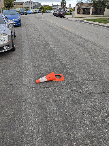 During practice yesterday, we had an orange cone flattened and another cone knocked across an intersection.