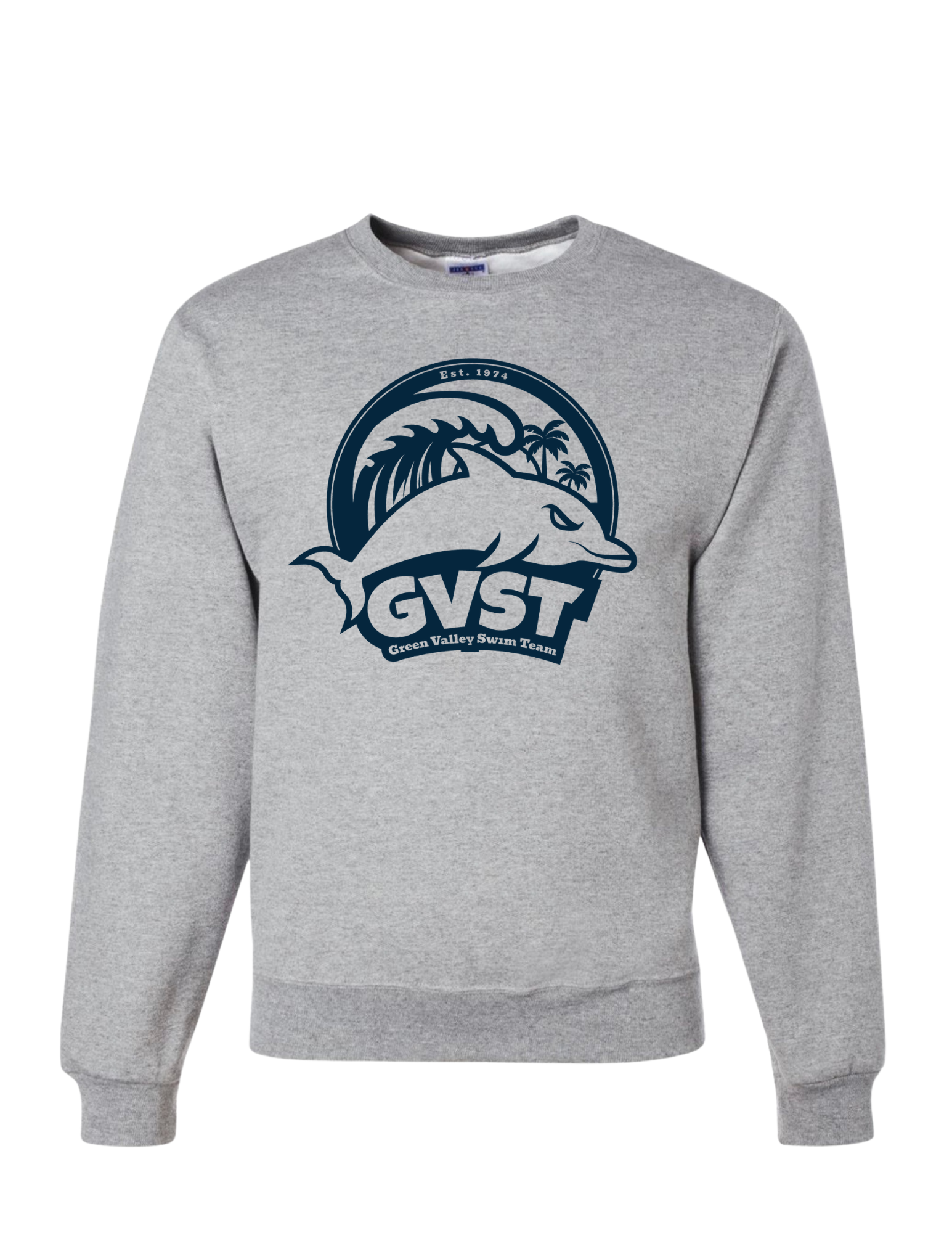 Stay cozy and show your team spirit with our classic GVST crewneck sweater. Featuring a GVST dolphin on the front, it's a must have for athletes, fans and supporters alike!